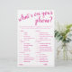 Simple tarjeta de puntos de juego "What's on Your Phone" con ducha/fiesta con un divertido guión con letras a mano. El diseño clásico incluye un moderno superpuesto de tipografía con letras a mano. Para otros colores o productos a juego, por favor visite la tienda JustFharryn Zazzle, o contacte con el diseñador, c/o Fharryn@yahoo.com Todos los derechos reservados. #bohochic #zazzlemade