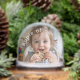 Capture the magic of the season with this personalized snow globe featuring a modern simple script Name, an arched phrase "Apple of our eye" and 2 Photos. This is a timeless keepsake that brings your favorite memories to life.