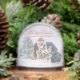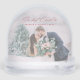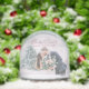 Simple Script Our First Christmas Wedding Photo Snow Globe with red modern calligraphy font.