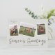 Un simple guión Tarjetas de Temporada 3 Foto Collage con saludo moderno manuscrito. El fondo y el color de la fuente son completamente personalizables para que coincidan fácilmente con el esquema de color de tu(s) fotografía(s). Haga clic en el botón editar para personalizar este diseño.