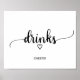Esta simple señal de bebidas con caligrafía negra es perfecta para una boda con tema rústico o moderno. El diseño minimalista presenta una elegante fuente de letra de pincel y un encantador corazón femenino.