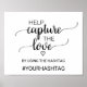 Esta sencilla señal de caligrafía negra "capture el amor" es perfecta para una boda rústica. El diseño minimalista presenta una elegante fuente de letra de pincel y un hermoso corazón femenino. La señal dice "ayude a capturar el amor usando el hashtag: su hashtag".