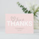Di gracias a amigos y familiares con esta sencilla tarjeta de agradecimiento con temática de San Valentín. El diseño presenta las palabras Amor y Gracias con una tipografía de letra manuscrita de moda y una fuente moderna y negrita con un corazón sobre un fondo rosa pálido. La tarjeta se invierte a un patrón elegante de acuarela con x y o. Para ver el conjunto de invitaciones a juego, visite www.zazzle.com/dotellabelle.