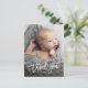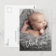 Esta tarjeta postal de agradecimiento de foto de bebé presenta un agradecimiento de caligrafía moderna en blanco con una gran foto del cliente. La parte trasera incluye un mensaje de agradecimiento que puedes personalizar para cada invitado o eliminarlo por completo si prefieres escribir a mano tu agradecimiento. Haz clic en personalizar para personalizar.