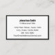Esta simple tarjeta de visita es de doble cara. Ambos lados tienen un elegante borde negro. El lado uno tiene líneas de texto para mostrar tu nombre, dirección, número de teléfono y dirección de correo electrónico. El lateral dos tiene una imagen de pantalla que puede reemplazar con su logotipo o un código QR. Todo el texto se puede editar o eliminar. El texto es negro.