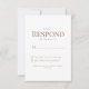 Tarjeta de Respuesta de Boda Blanca. Cena y Baile. Fuente moderna. Fuente combinada. Texto dorado. Floral Amarillo.