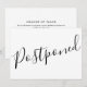 Esta simple tarjeta postergada en blanco y negro se puede personalizar con la información de su evento cancelado. El reverso tiene detalles adicionales para que puedas actualizar a tus invitados. Diseñado por Thisisnotme©