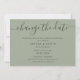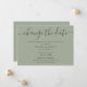 Anuncia el aplazamiento de tu boda con esta tarjeta minimalista de color verde salvia que presenta una fuente de escritura moderna.