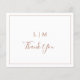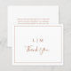 Tarjeta de agradecimiento simple y boda de presupuesto con un diseño moderno y elegante con un monograma de dos letras junto con "gracias" en un tipo de letra manuscrita rodeado de un borde delgado. El reverso tiene tu mensaje personalizado. Todos los elementos de diseño están en terracota / naranja quemado / óxido / cobre y pueden cambiarse a cualquier color que desee en la herramienta de edición de diseño. Una moda y un diseño de diseño, ideal para una pareja minimalista.
