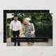 Las tarjetas fotográficas de Año Nuevo sencillas y modernas presentan su foto horizontal o paisajista favorita en todo el sangrado, con un elegante overlay negro clásico con el saludo de Año Nuevo, el nombre de la familia y el año.