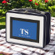 Sencillo y de diseño, con un aspecto retro, esta lonja personalizado presenta elementos de diseño clásicos de un audaz bloque de color geométrico rectangular con un marco azul y negro en negrita sobre un fondo blanco roto. Se incluye una plantilla de texto con las iniciales de monograma y el nombre que desea personalizar. El estilo es elegante y deportivo, pero sencillo y moderno, con un toque de género neutro.