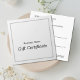 Simple y elegante Certificado de Regalo Faux Silve