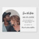Una foto magnética Guarde la tarjeta de fecha para su boda. Al frente: Añade tu propia foto de tamaño vertical. Fondo blanco de moda, texto negro. Plantillas para nombres y fecha. El nombre y el texto: Guardar la fecha se escriben con un guión de estilo con letras a mano moderno.