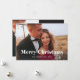Esta sencilla y elegante tarjeta fotográfica de vacaciones dice "Feliz Navidad" en negrita, blanca y elegante tipografía moderna con tu foto familiar favorita al otro lado de la tarjeta. Tu mensaje personal de vacaciones puede ir por la parte de atrás, con un minimalista diseño de carbón negro y blanco oscuro.