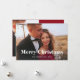 Esta sencilla y elegante tarjeta fotográfica de vacaciones dice "Feliz Navidad" en negrita, blanca y elegante tipografía moderna con tu foto familiar favorita al otro lado de la tarjeta. Tu mensaje personal de vacaciones puede ir por detrás, con un diseño minimalista rojo y blanco.