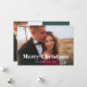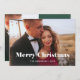 Esta sencilla y elegante tarjeta fotográfica de vacaciones dice "Feliz Navidad" en negrita, blanca y elegante tipografía moderna con tu foto familiar favorita al otro lado de la tarjeta. Tu mensaje personal de vacaciones puede ir por la parte de atrás, con un diseño minimalista verde y blanco.