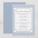 ¡Felicidades por tu feliz ocasión! Que su familia y amigos sepan todo sobre su boda con estilo con esta elegante invitación a la boda Simplemente Clásico de Damasco en un azul sereno! Esta invitación es fácil de personalizar. Todo lo que tiene que hacer es agregar su información a los campos proporcionados. Si desea personalizar aún más el diseño, haga clic en el botón "Personalizar" donde puede cambiar los tipos de letra o los colores del tipo de letra.
