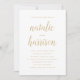 Invite a sus seres queridos a asistir a su día especial con nuestras invitaciones a bodas de Simplicidad. Las invitaciones minimalistas a las bodas combinan caligrafía elegante con un esquema de colores dorado y blanco. Personalice las invitaciones de boda con los detalles de su boda.