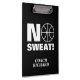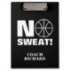 No hay portapapeles deportivo para entrenador de baloncesto. Diseño del humor deportivo con el logo de la bola fría y cita motivacional humorística. Novedad divertida Regalos de cumpleaños para entrenador de baloncesto, papá, capitán, entrenador, jugador, etc. Añade tu propio nombre y colores personalizados.