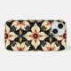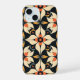 Esta obra de arte presenta un patrón elegante y simétrico compuesto por formas abstractas de tipo pétalo dispuestas en un diseño armonioso. La paleta de colores incluye tonos cálidos de crema, naranja y amarillo mostaza, contrastados con un fondo negro profundo. Los motivos de entrelazamiento crean una sensación de equilibrio y fluidez, cada elemento se coloca cuidadosamente para formar una composición cohesiva y rítmica. El diseño evoca una mezcla de formas inspiradas en la naturaleza y precisión geométrica, lo que resulta en una pieza visualmente cautivadora.