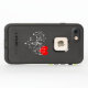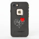 Gran silueta de notas musicales y arcos en forma de corazón, una pequeña imagen de un corazón rojo detrás de las notas negras. Funda FRĒ® de color negro romántico único para Apple iPhone 7 para cualquier persona.