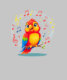 A cheerful and colorful illustration of a parrot happily singing, designed in a simple and clean style with no background.