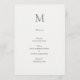Modern wedding menu card featuring a refined single initial monogram and clean, minimalist typography. Designed for civil ceremonies, city hall weddings, and contemporary receptions, this menu card presents the meal selection with clarity and understated elegance.