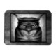 Ilustracion blanco y negro de un siniestro gato mantel. Personalizado original de Taylor Addams.