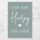 Empieza el fiesta con estas etiquetas de botellas bonitas. El diseño incluye "sorber sorbo" junto con el corazón y el nombre del evento con letras blancas en un polvoriento fondo verde sabio. Perfecto para fiestas de soltera, fines de semana de chica y más.