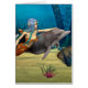 Dos amigos, una sirena linda nadando con un delfín en un océano de fantasía azul