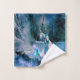Sirena de pelo turquesa en una roca con un castillo detrás de ella. Tiene una cascada que lleva al fondo marino del océano.