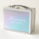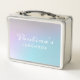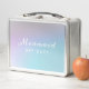 Fondo azul turquesa de color morado a claro con texto editable en la parte frontal y posterior. Elegir entre los colores disponibles de la lonchera