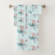 Toallas con un ilustracion adorable. Diseñado con un chica de sirena de bonito montando un delfín feliz. Un pequeño amigo de medusas los acompaña. Decorada con pequeñas manchas de purpurina de oro falso.