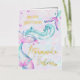 "Nos Sirvimos para ser hermanas", sentimiento divertido para tu mejor amiga, hermana real o cualquier chica amigo que sea como una hermana. El diseño presenta escalas de sirena con colas de sirena, olas oceánicas y burbujas con letras de Relieve metalizado de oro de lujo en la tipografía con temática de sirena. La tarjeta está escrita con Feliz Cumpleaños pero puedes editarla para agradecerte, estás mermando o lo que necesites.