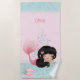 Toalla de playa con una bonita sirena de morena de color rosa y azul acuático. Personalice fácilmente el nombre, escriba monograma o déjelo en blanco - Kate Eden Art