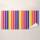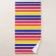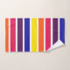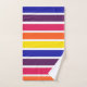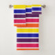 Un sistema colorido de toallas de baño que ofrecen un modelo rayado diseña con las lineas horizontales coloreadas brillantes, intrépidas en seis colores: magenta, naranja, amarillo, azul, púrpura, y blanco.