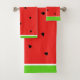 ¡El sistema de la toalla de la " sandía" parecería grande en cualquier cuarto de baño! Fije el luce increíble junto o usted puede apenas comprar uno o dos del sistema. El sistema viene con una toalla de baño, la toalla de mano y el washcloth. ¡Hace un gran regalo de la presentadora!