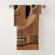 Sistema de madera natural de la toalla de la música de la guitarra acústica. Un sistema musical de la toalla del cuarto de baño de la secuencia del primer de acero de caoba de la guitarra. Un gran regalo para su guitarrista, músico o amante de la música preferido, o para su hogar o estudio temático de la música.