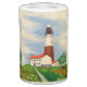 Para los amantes del faro, amantes del barco, amantes de la playa, amantes del verano-- ¡Usted lo nombra! Perfeccione para la estación de verano y perfeccione para las casas a lo largo de la orilla. Ofrece una pintura del aceite-tempera titulada "el faro 1797 de Montauk" por Taras Schumylowych, 1953.