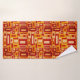 Las características determinadas modernas de la toalla de baño de Geometrics de los mediados de siglo retros un modelo geométrico de rectángulos y los cuadrados con un crujido texturizan. Los colores son rojo, amarillo de oro, ocre y marfil.