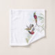 La bella arte botánica del vintage magnífico de los pájaros y de las hojas atados largos rojos exóticos del colibrí está en este sistema de la toalla de baño. La imagen es public domain debido a los derechos reservados expirados.