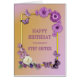 Una preciosa tarjeta de cumpleaños floral para una hermanita. Flores y mariposas en un marco dorado.Un tema lila le da un ambiente relajado y lujoso. Una tarjeta maravillosa para darle a alguien que usted cuida en su cumpleaños.