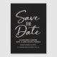 Esta boda limpia y romántica Salven la tarjeta de imán delgada de la fecha tiene un esquema blanco y negro y tipografía cursiva con letras a mano. Personalizado con sus nombres, la fecha de su boda, la ubicación y la dirección del sitio web de su boda. Es un diseño magnífico, perfecto para un simple boda o invitación de compromiso.
