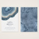 No todos los diseños bodas se crean iguales. Los diseños asimétricos de las piezas en este conjunto impactante de bodas demuestran que eso no es malo. Bandas onduladas de color en tonos que van desde el azul polvoriento hasta el beige arenoso, con un centro de cristal brillante, forman un acento geodésico/agato en la mayoría de las piezas del conjunto. La tarjeta de gabinete "Sitio web" del boda que se muestra aquí incluye lo anterior más una plantilla para agregar un mensaje personal, sus nombres y fecha de boda. El reverso presenta un fondo abstracto de coordinación que recuerda a la piedra vetada con purpurina. Buscar ID647 para ver todas las piezas de coordinación de este conjunto.