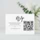 Optimiza la gestión de tu lista de invitados con esta tarjeta de respuesta tecnológica diseñada para la pareja moderna eficiente. El diseño presenta tipografía de pincel negro en negrita combinada con un código escaneable limpio para respuestas digitales sin problemas. Fácil de personalizar con la URL de su sitio web específico y detalles de plazo.
