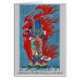 Figura budista o hindú azul mitológica, integral, situación en la pequeña isla entre las ondas, haciendo frente a la derecha, contra el contexto de llamas con la cabeza de Phoenix.