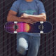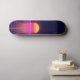 Escape into a neon-drenched horizon with this retro vaporwave sunset skateboard. Featuring a glowing golden sun behind a vibrant pink geometric grid, this deck perfectly captures the nostalgic 80s retrowave aesthetic. Silhouetted palm trees and a deep starlit sky complete the look, making it the ultimate choice for skaters who love the synthwave lo-fi aesthetic.
