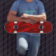 Los tonos rojos crean un aspecto atrevido y atrevido en esta patineta. Un efecto de mármol fresco creado a partir de una técnica de recubrimiento de pincel digital utilizando un color burdeos muestra movimientos ondulados dentro de las olas. Este diseño inspirado en la playa es moderno y divertido, con el aspecto de las llamas.