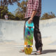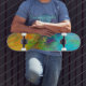 Una tabla de skate con un diseño abstracto colorido. La imagen y el texto pueden ser personalizados. Arte original de WBartworks.