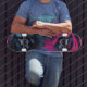 Skateboard Acercamiento azul neón y rosado de los ojos tigres